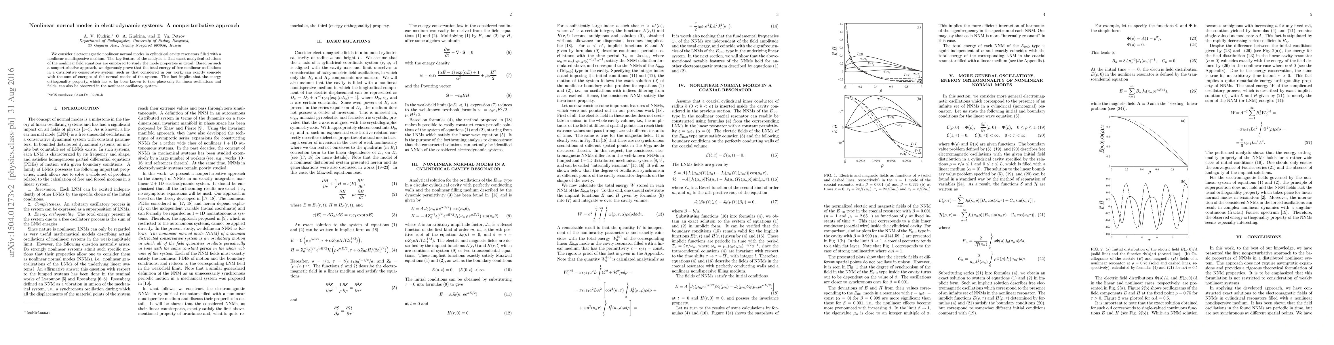 Researchers prove that nonlinear normal modes in electrodynamic systems can have total energy equal to the sum of their individual energies, a property previously known only for linear oscillations.