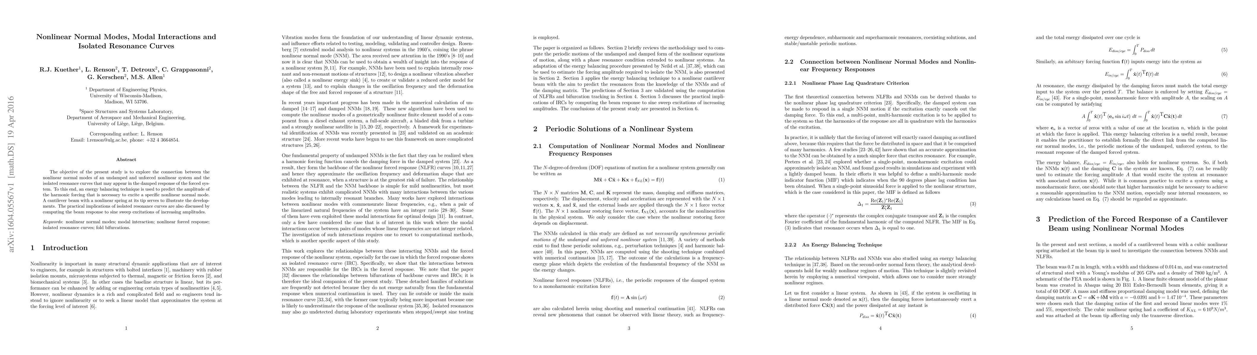 This study investigates the relationship between nonlinear normal modes in an undamped system and isolated resonance curves in its damped, forced counterpart, using an energy balancing technique. A cantilever beam with a nonlinear spring exemplifies these concepts, and the paper discusses practical implications through sine sweep excitations.