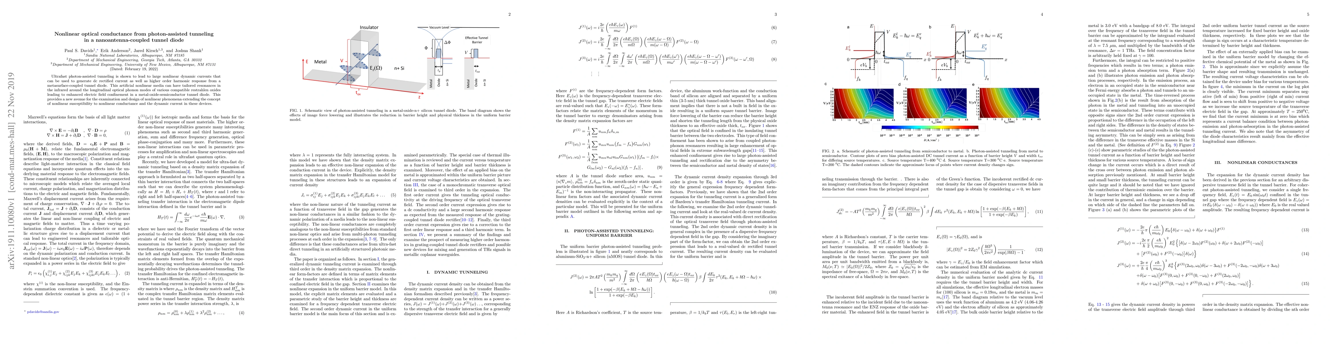 Ultrafast photon-assisted tunneling is shown to lead to large nonlinear dynamic currents that can be used to generate dc rectified current as well as higher order harmonic response from a metasurface-coupled tunnel diode. This artificial nonlinear media can have tailored resonances in the infrared around the longitudinal optical phonon modes of various compatible restrahlen oxides leading to enhanced electric field confinement in a metal-oxide-semiconductor tunnel diode. This provides a new avenue for the examination and design of nonlinear phenomena extending the concept of nonlinear susceptibility to nonlinear conductance and the dynamic current in these devices.