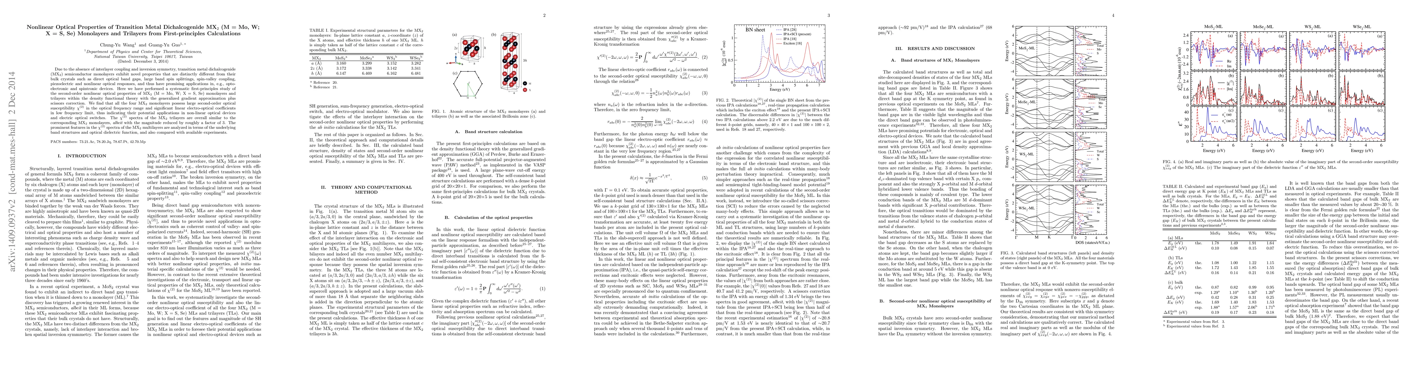 This research investigates the second-order nonlinear optical properties of MoS$_2$, WS$_2$, MoSe$_2$, and WSe$_2$ monolayers and trilayers using first-principles calculations. The study reveals significant $\chi^{(2)}$ values in monolayers, suggesting potential for non-linear optical devices, while trilayers show reduced but similar $\chi^{(2)}$ spectra compared to monolayers.