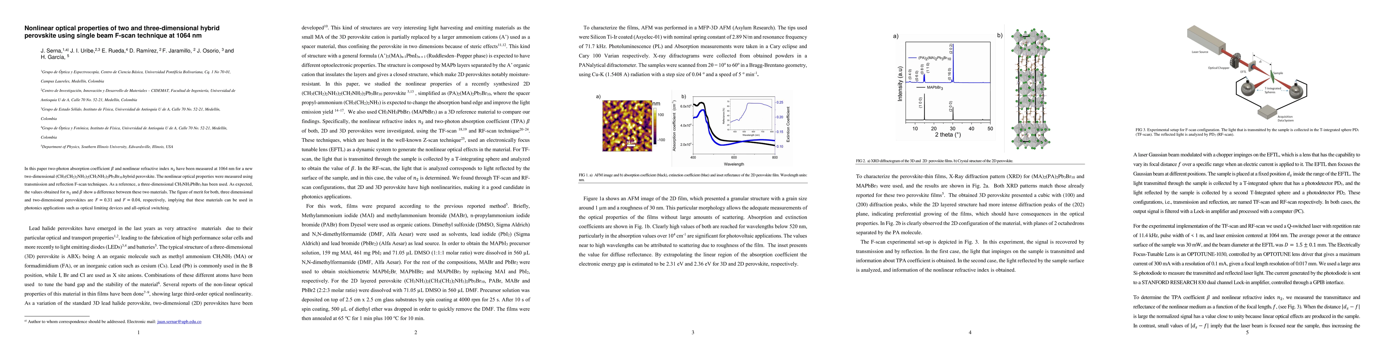 Researchers measured nonlinear optical properties of two-dimensional and three-dimensional perovskites using F-scan technique, finding significant differences between the materials for applications like optical limiting devices and all-optical switching.