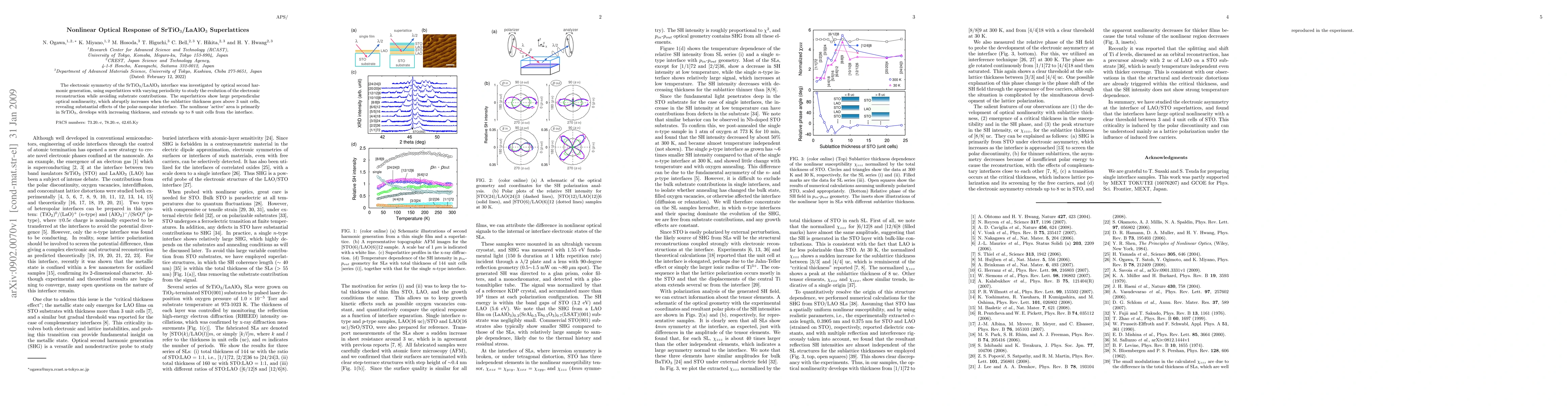 SrTiO3/LaAlO3 superlattices exhibit significant perpendicular optical nonlinearity, especially when the sublattice thickness exceeds 3 unit cells, highlighting the impact of the polar-nonpolar interface; the nonlinear 'active' area predominantly lies within SrTiO3 and expands with increasing thickness up to 8 unit cells.