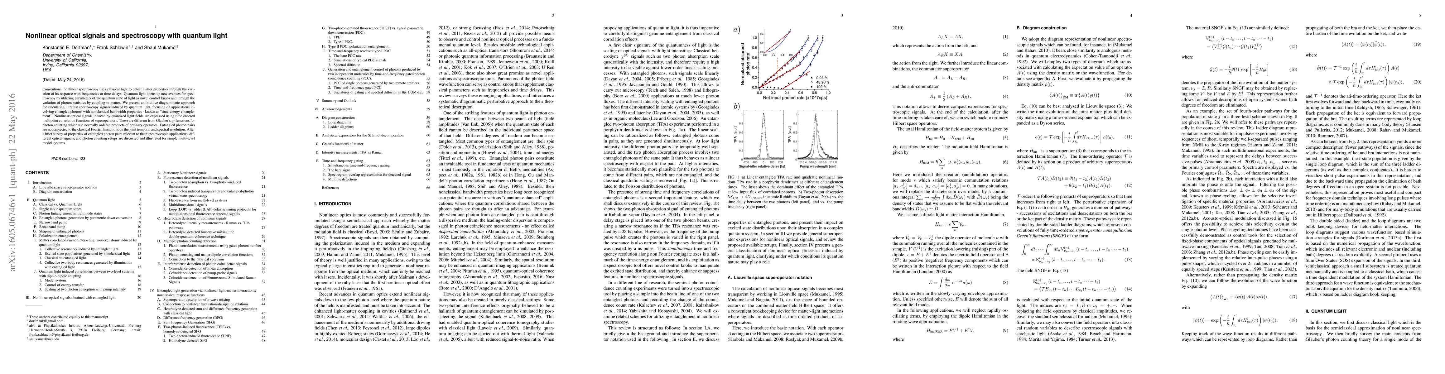 This paper explores nonlinear optical signals and spectroscopy using quantum light, specifically focusing on entangled photons. It introduces a diagrammatic approach for calculating ultrafast spectroscopy signals, highlighting the advantages over classical methods and the unique properties of time-energy entanglement in quantum states.