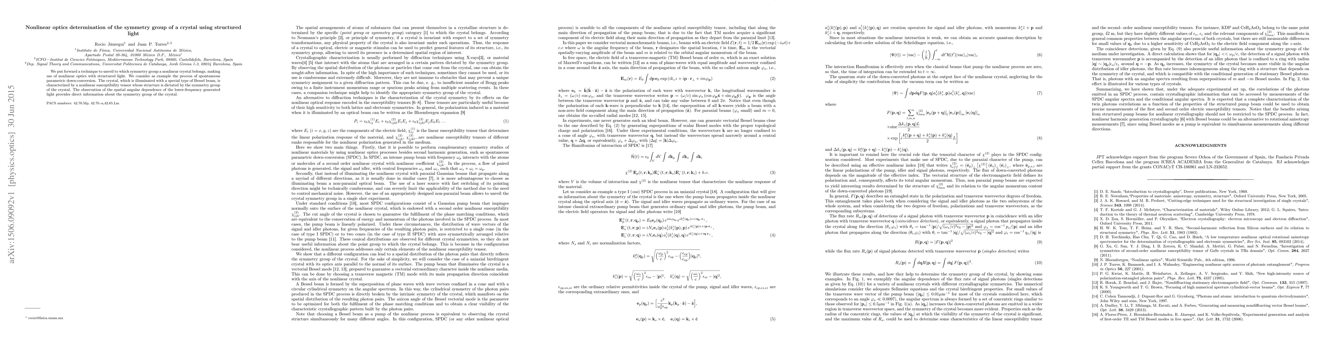 Researchers developed a technique using structured light to determine a crystal's symmetry group by analyzing its nonlinear optical properties. This method provides direct information about the crystal's symmetry group through the spatial angular dependence of generated light.