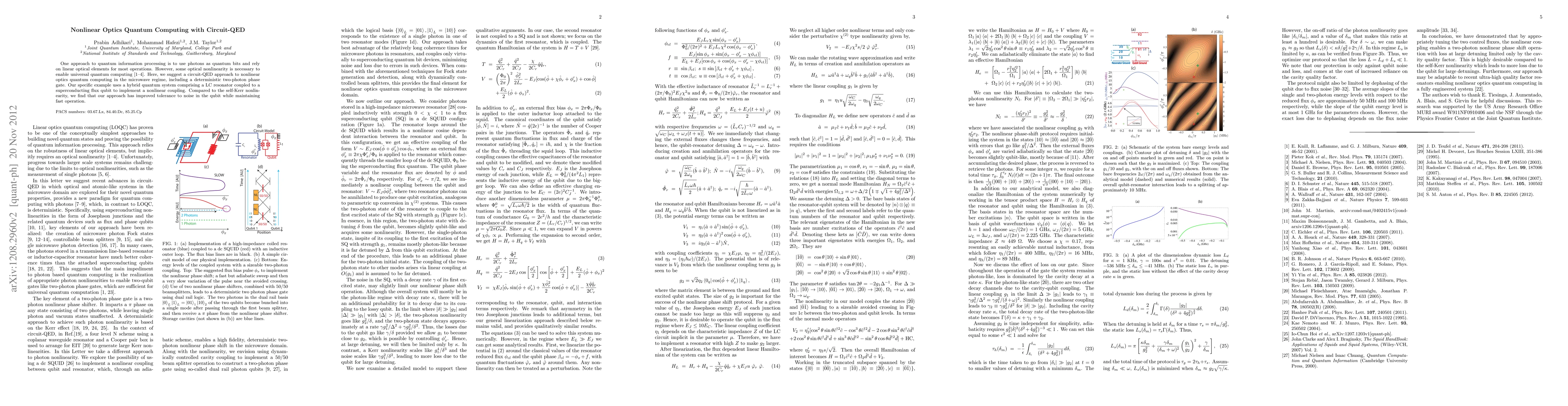 One approach to quantum information processing is to use photons as quantum bits and rely on linear optical elements for most operations. However, some optical nonlinearity is necessary to enable universal quantum computing. Here, we suggest a circuit-QED approach to nonlinear optics quantum computing in the microwave regime, including a deterministic two-photon phase gate. Our specific example uses a hybrid quantum system comprising a LC resonator coupled to a superconducting flux qubit to implement a nonlinear coupling. Compared to the self-Kerr nonlinearity, we find that our approach has improved tolerance to noise in the qubit while maintaining fast operation.