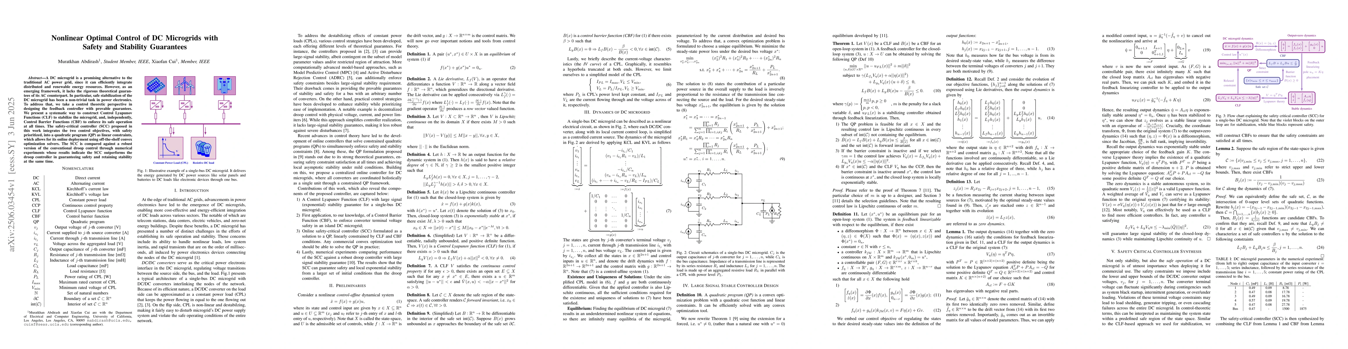The research presents a control theoretic perspective for designing a feedback controller for DC microgrids, constructing Control Lyapunov Functions (CLF) for stabilization and Control Barrier Functions (CBF) for safe operation, integrated into a quadratic program (QP) for online deployment.