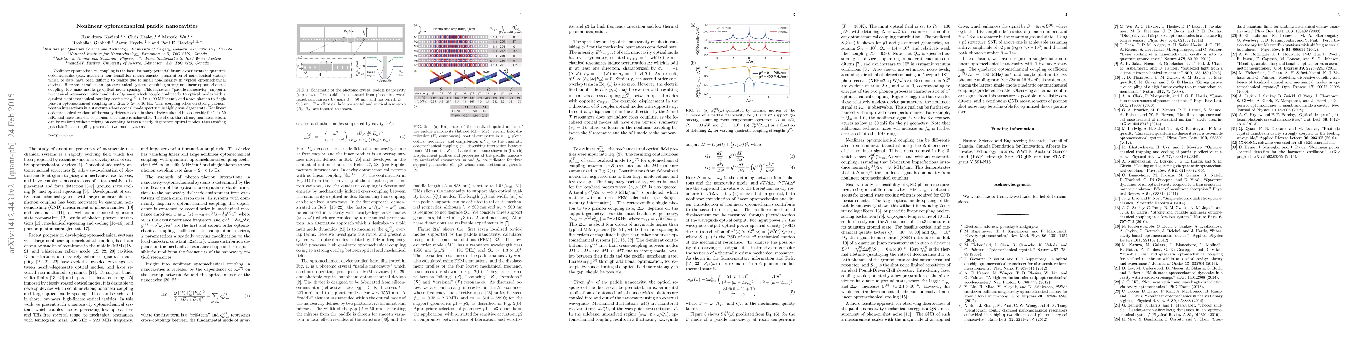 This paper introduces a nanoscale "paddle nanocavity" that achieves strong nonlinear optomechanical coupling, overcoming the limitations of small non-linearity in typical optomechanical devices. The device supports mechanical resonances with high coupling rates, enabling potential quantum optomechanics applications.
