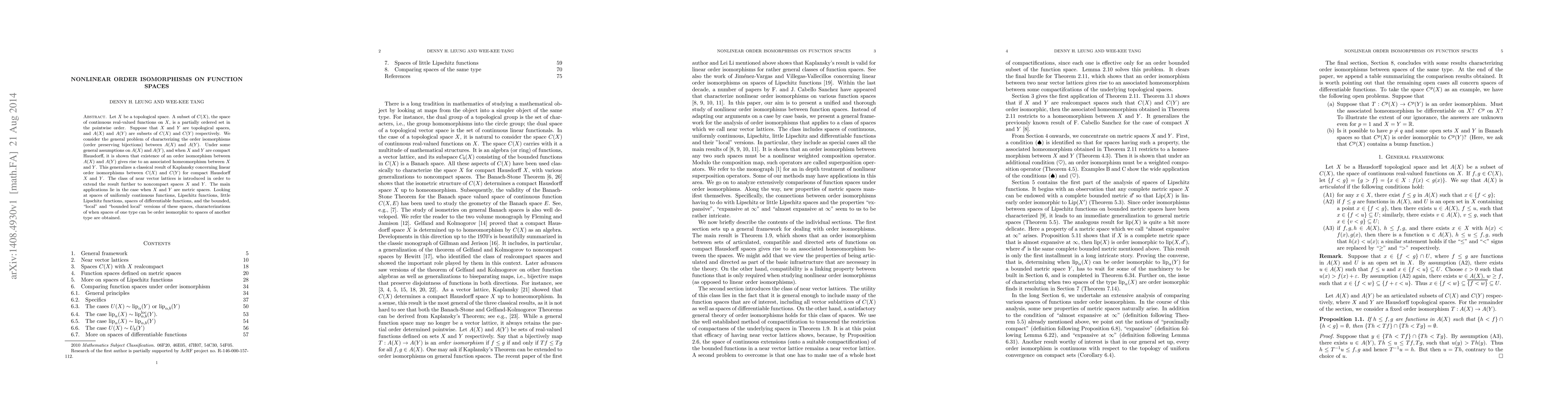This paper explores order isomorphisms between subsets of continuous real-valued functions on topological spaces, demonstrating that such isomorphisms imply homeomorphisms under certain conditions, generalizing a result by Kaplansky. It introduces near vector lattices to extend this to noncompact spaces and characterizes when spaces of various function types (uniformly continuous, Lipschitz, differentiable) can be order isomorphic.