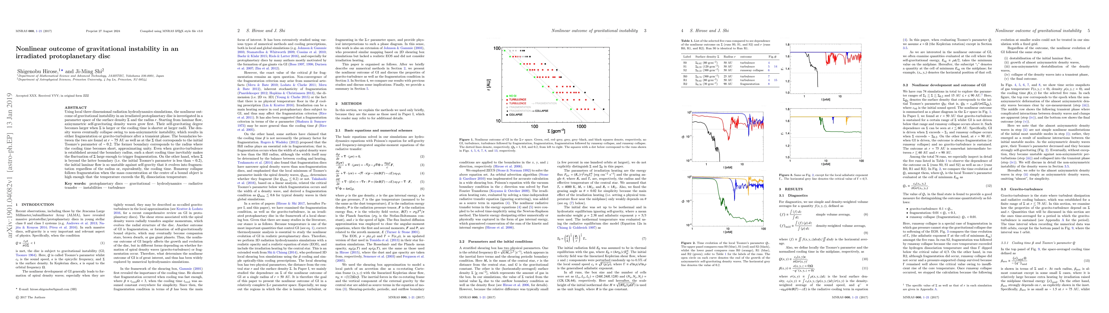 Research simulates gravitational instability in protoplanetary discs with radiation, finding that it can lead to fragmentation or gravito-turbulence depending on surface density and cooling time.