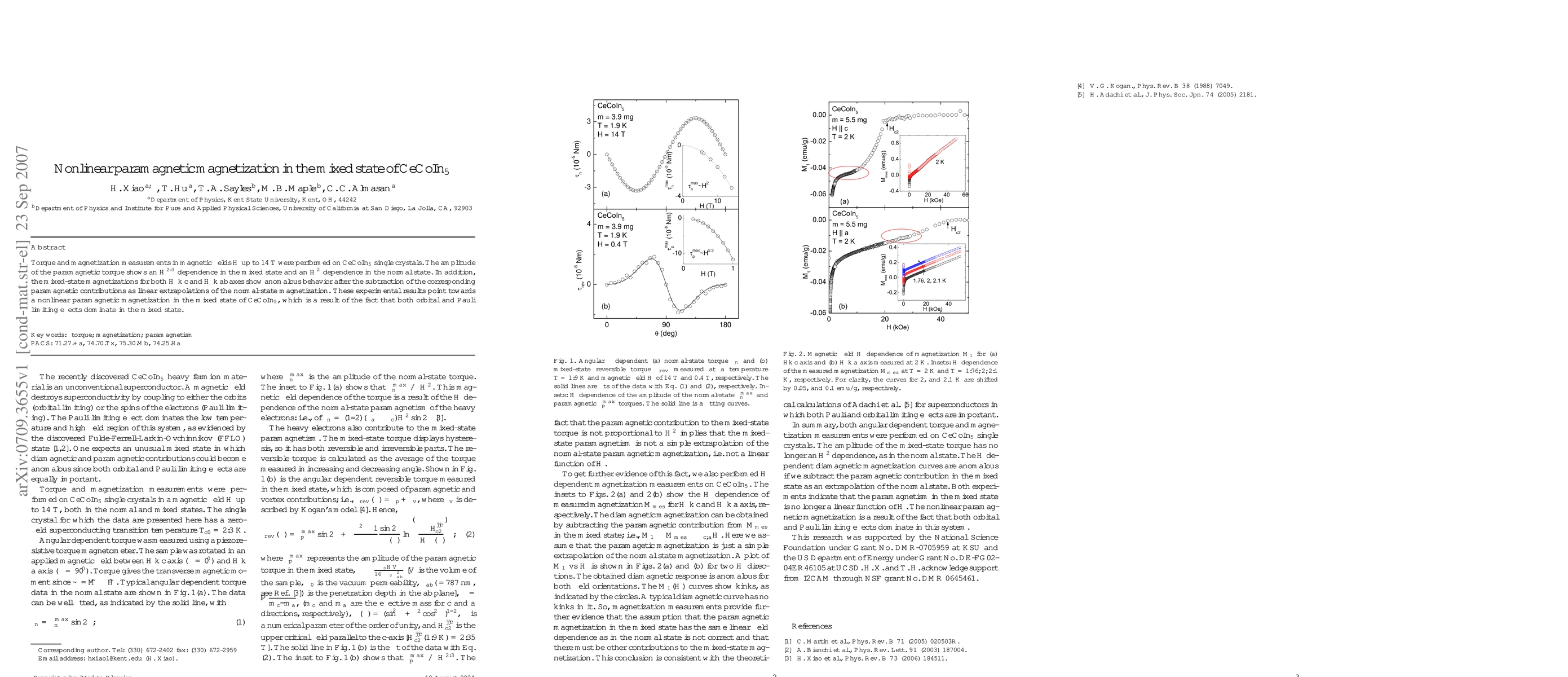 This research investigates CeCoIn5, finding its paramagnetic torque in mixed state scales with H^2.3, unlike the normal state's H^2. Mixed-state magnetization anomalies, post-paramagnetic subtraction, suggest nonlinear paramagnetic magnetization due to orbital and Pauli limiting effects dominance.