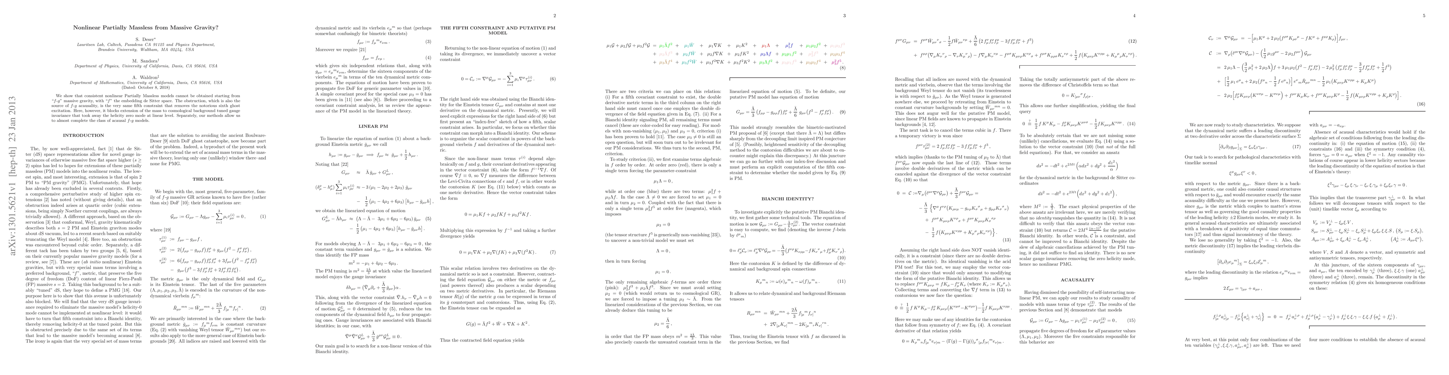 This paper demonstrates that nonlinear Partially Massless models cannot be derived from "f-g" massive gravity, due to an inherent fifth constraint that causes acausality and removes the sixth ghost. This constraint also prevents extending the mass to cosmological backgrounds, which would otherwise eliminate the helicity zero mode.