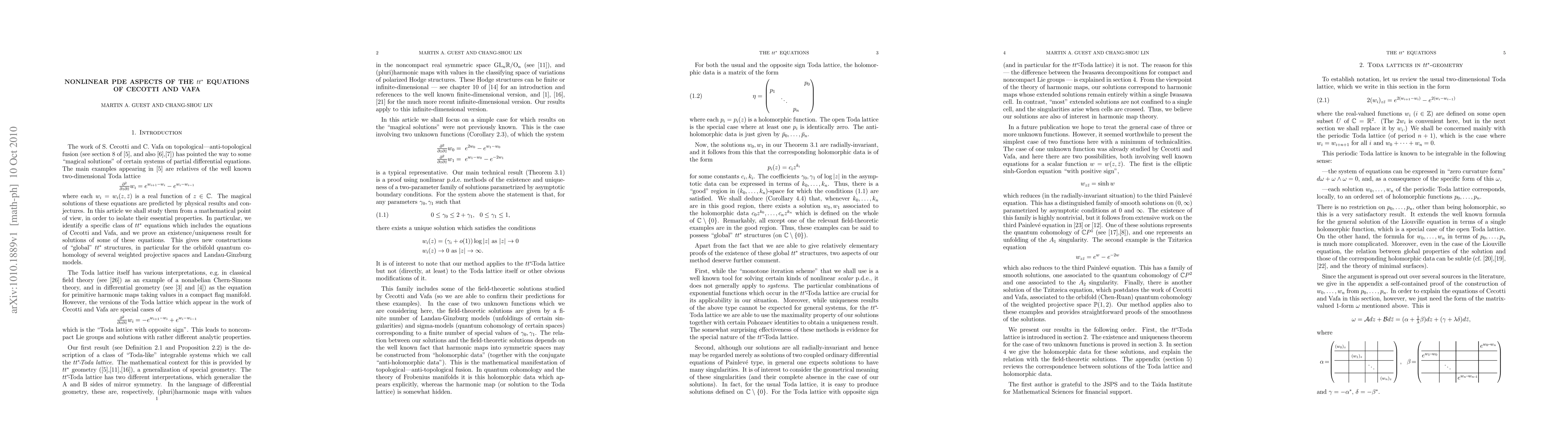 This paper employs nonlinear PDE techniques to construct globally smooth tt* structures linked to the quantum cohomology of complex projective and weighted projective spaces, fulfilling predictions by Cecotti and Vafa. The solutions of the tt*-Toda lattice equations, termed "magical solutions," are harmonic maps with dual interpretations as Frobenius or Hodge structures.