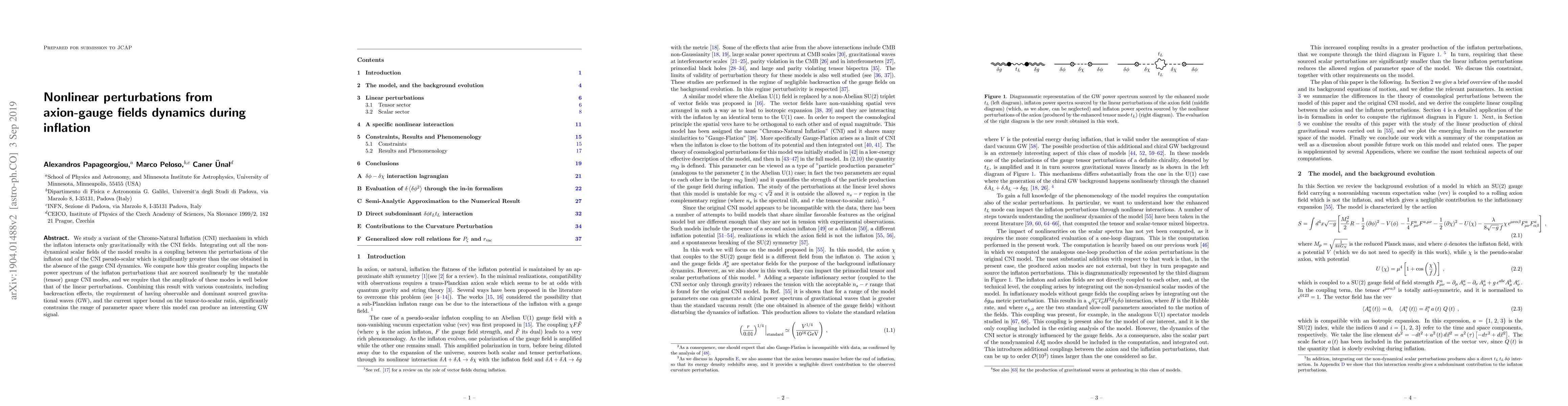 This paper investigates a variant of the Chromo-Natural Inflation mechanism where the inflaton interacts gravitationally with CNI fields, leading to enhanced coupling between inflaton and pseudo-scalar perturbations. The study constrains the model's parameter space by requiring the amplitude of nonlinear tensor modes to remain below that of linear perturbations, while also considering observable gravitational waves and current upper limits on the tensor-to-scalar ratio.