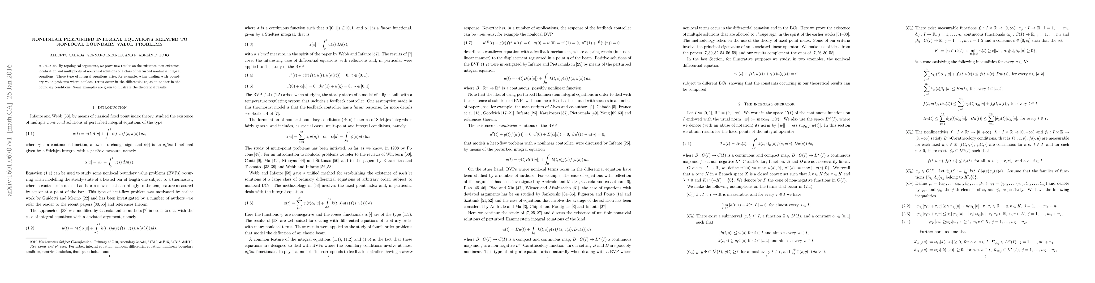 This paper proves new results on the existence, non-existence, localization, and multiplicity of solutions for perturbed nonlinear integral equations arising from nonlocal boundary value problems using topological arguments. Examples are provided to illustrate the theoretical findings.
