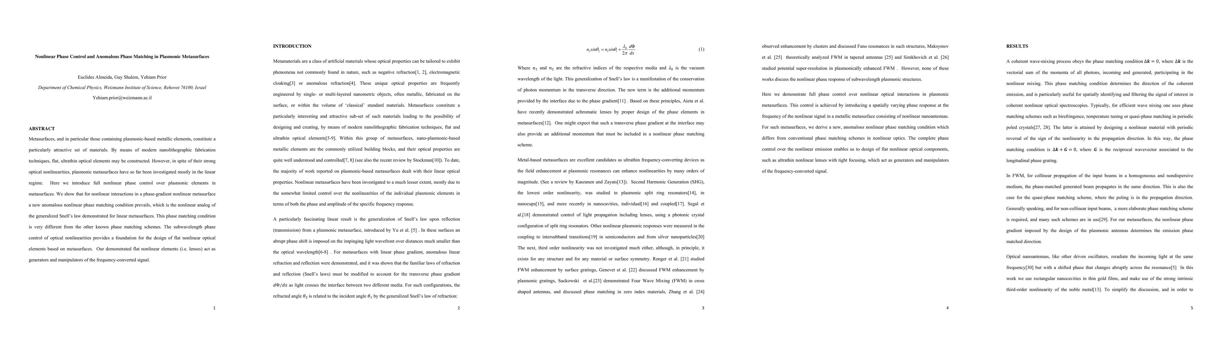 This paper introduces nonlinear phase control in plasmonic metasurfaces, demonstrating a new anomalous nonlinear phase matching condition that differs from traditional schemes. The findings enable the design of flat, nonlinear optical elements, such as lenses, that can manipulate and generate frequency-converted signals.