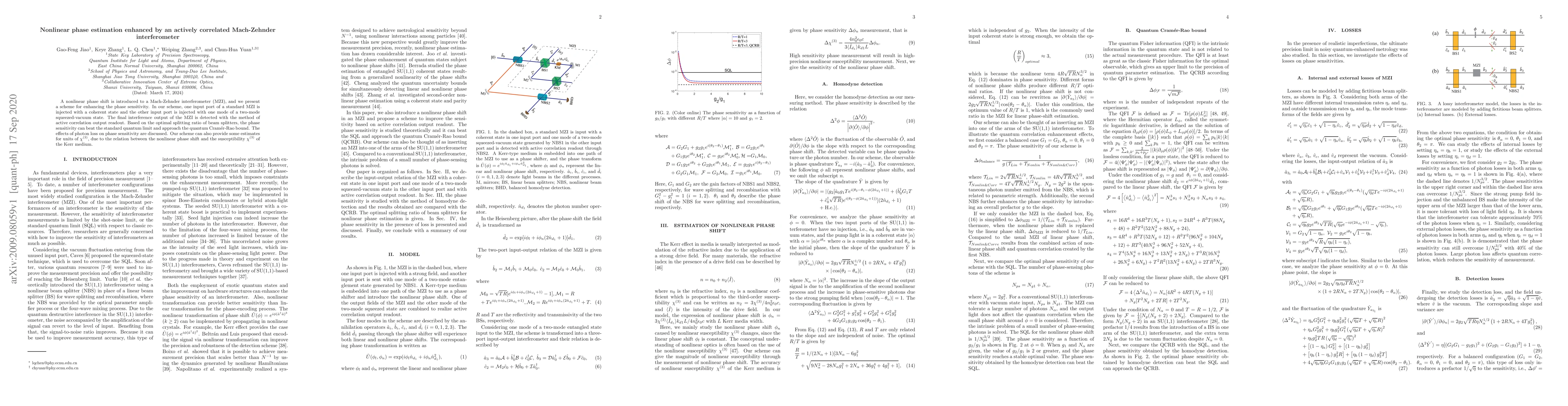 This paper proposes a method to enhance phase sensitivity in a Mach-Zehnder interferometer by combining a coherent state with a two-mode squeezed-vacuum state, achieving sensitivity that approaches the quantum Cramer-Rao bound. The scheme also discusses the impact of photon loss and provides estimates for the third-order nonlinear susceptibility $\chi^{(3)}$.