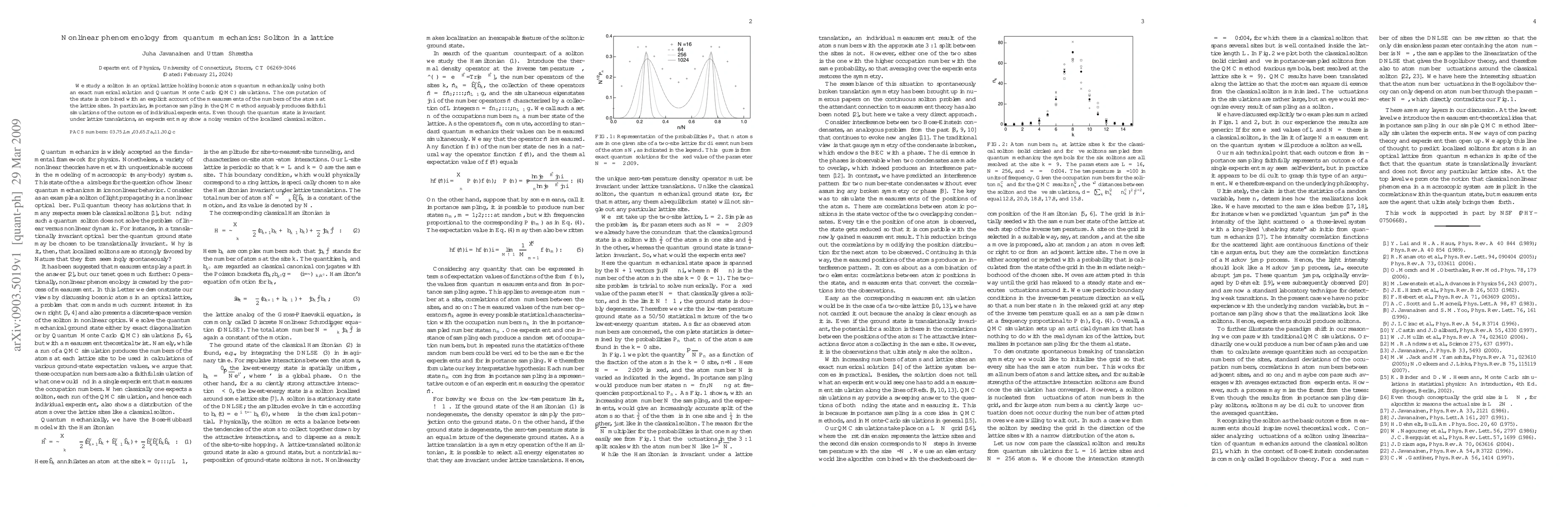We study a soliton in an optical lattice holding bosonic atoms quantum mechanically using both an exact numerical solution and quantum Monte Carlo simulations. The computation of the state is combined with an explicit account of the measurements of the numbers of the atoms at the lattice sites. In particular, importance sampling in the quantum Monte Carlo method arguably produces faithful simulations of individual experiments. Even though the quantum state is invariant under lattice translations, an experiment may show a noisy version of the localized classical soliton.