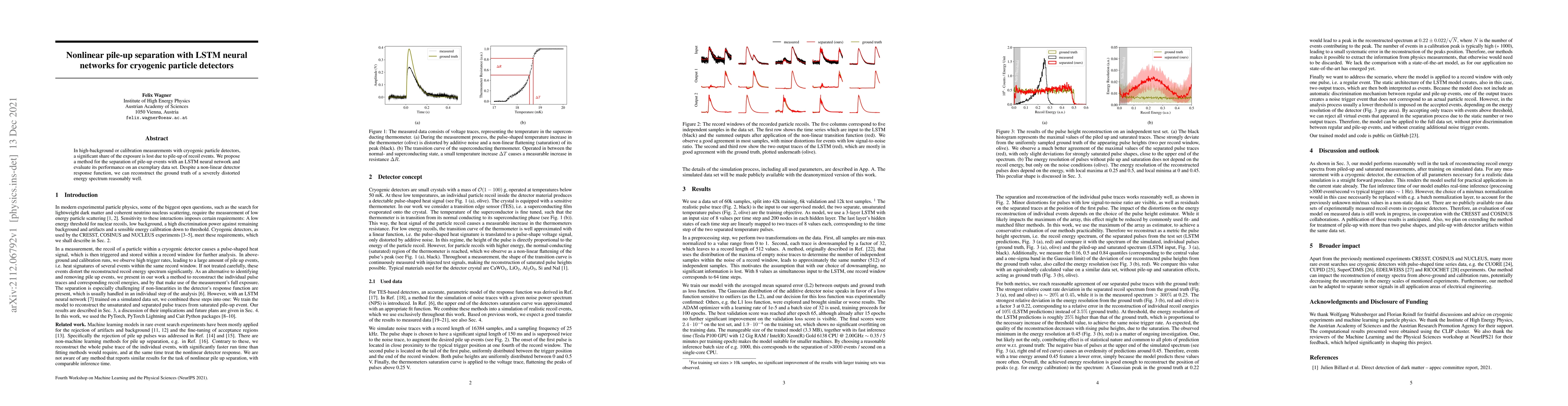This paper proposes using LSTM neural networks to separate pile-up events in cryogenic particle detectors, significantly improving data recovery in high-background measurements. The method effectively reconstructs the distorted energy spectrum despite the detector's non-linear response.