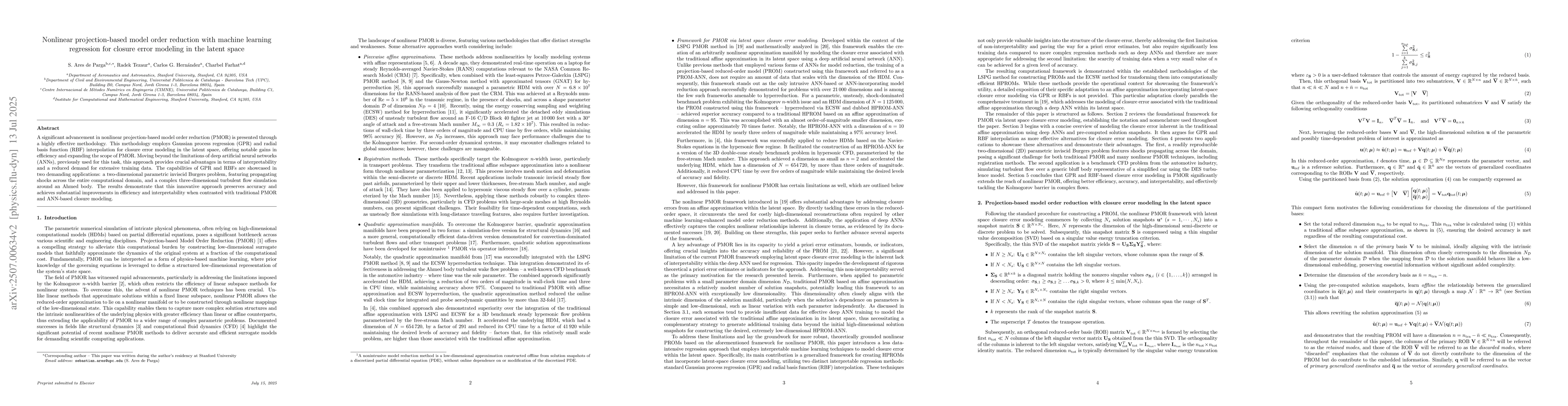 A significant advancement in nonlinear projection-based model order reduction (PMOR) is presented through a highly effective methodology. This methodology employs Gaussian process regression (GPR) and radial basis function (RBF) interpolation for closure error modeling in the latent space, offering notable gains in efficiency and expanding the scope of PMOR. Moving beyond the limitations of deep artificial neural networks (ANNs), previously used for this task, this approach provides crucial advantages in terms of interpretability and a reduced demand for extensive training data. The capabilities of GPR and RBFs are showcased in two demanding applications: a two-dimensional parametric inviscid Burgers problem, featuring propagating shocks across the entire computational domain, and a complex three-dimensional turbulent flow simulation around an Ahmed body. The results demonstrate that this innovative approach preserves accuracy and achieves substantial improvements in efficiency and interpretability when contrasted with traditional PMOR and ANN-based closure modeling.