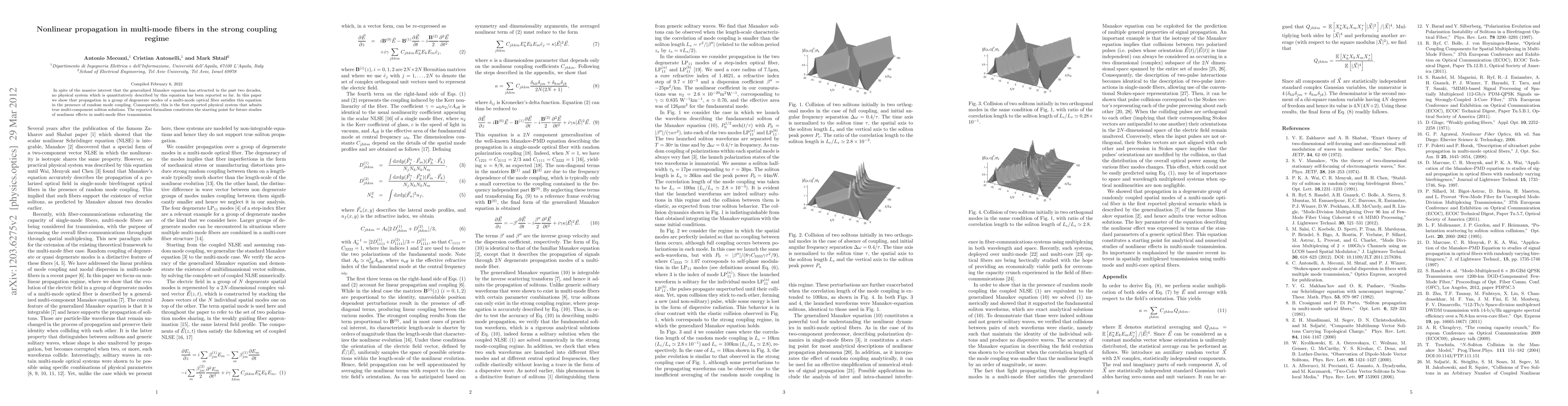 In spite of the massive interest that the generalized Manakov equation has attracted in the past two decades, no physical system which is quantitatively described by this equation has been reported so far. In this paper we show that propagation in a group of degenerate modes of a multi-mode optical fiber satisfies this equation in the presence of random mode coupling. Consequently, this is the first reported physical system that admits true multi-component soliton solutions. The reported formalism constitutes the starting point for future studies of nonlinear effects in multi-mode fiber transmission.