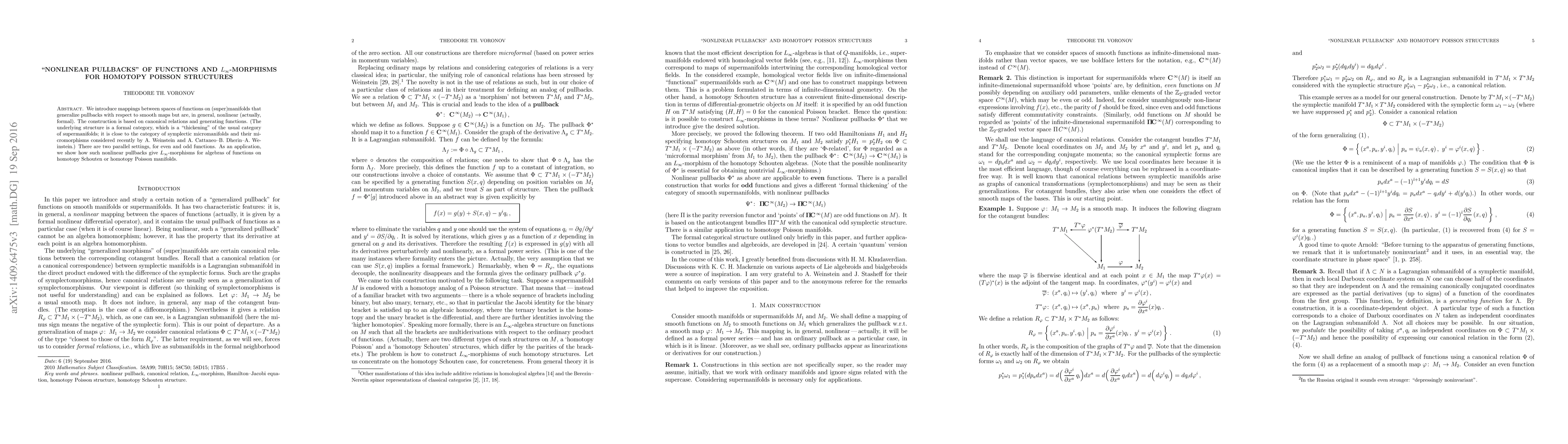 We introduce mappings between spaces of functions on (super)manifolds that generalize pullbacks with respect to smooth maps but are, in general, nonlinear (actually, formal). The construction is based on canonical relations and generating functions. (The underlying structure is a formal category, which is a "thickening" of the usual category of supermanifolds; it is close to the category of symplectic micromanifolds and their micromorphisms considered recently by A. Weinstein and A. Cattaneo--B. Dherin--Weinstein.) There are two parallel settings, for even and odd functions. As an application, we show how such nonlinear pullbacks give $L_{\infty}$-morphisms for algebras of functions on homotopy Schouten or homotopy Poisson manifolds.
