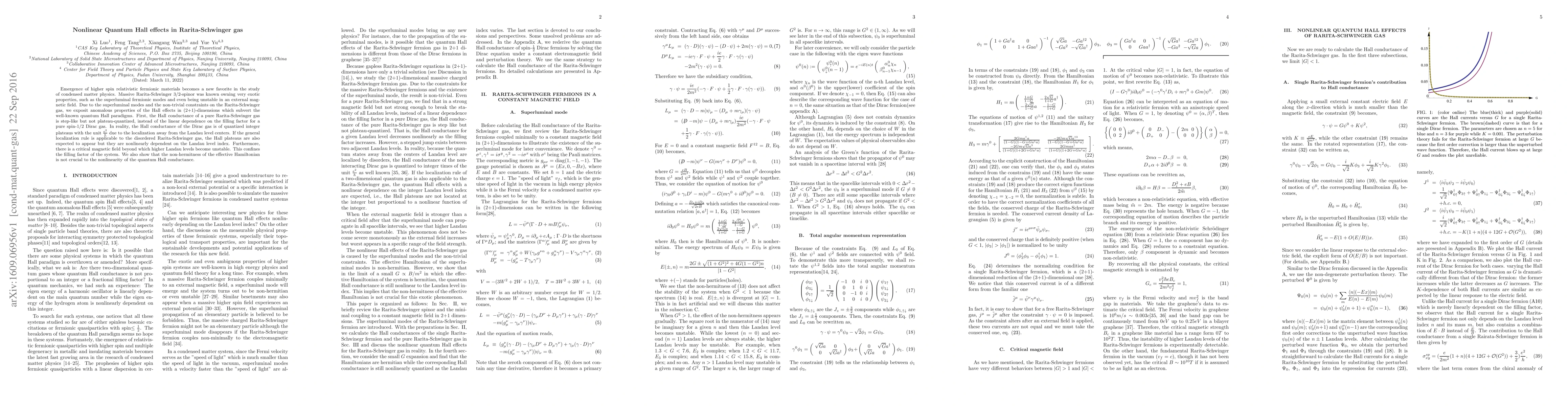 Emergence of higher spin relativistic fermionic materials becomes a new favorite in the study of condensed matter physics. Massive Rarita-Schwinger 3/2-spinor was known owning very exotic properties, such as the superluminal fermionic modes and even being unstable in an external magnetic field. Due to the superluminal modes and the non-trivial constraints on the Rarita-Schwinger gas, we exposit anomalous properties of the Hall effects in (2+1)-dimensions which subvert the well-known quantum Hall paradigms. First, the Hall conductance of a pure Rarita-Schwinger gas is step-like but not plateau-quantized, instead of the linear dependence on the filling factor for a pure spin-1/2 Dirac gas. In reality, the Hall conductance of the Dirac gas is of quantized integer plateaus with the unit $\frac{e^2}h$ due to the localization away from the Landau level centers. If the general localization rule is applicable to the disordered Rarita-Schwinger gas, the Hall plateaus are also expected to appear but they are nonlinearly dependent on the Landau level index. Furthermore, there is a critical magnetic field beyond which higher Landau levels become unstable. This confines the filling factor of the system. We also show that the non-hermitness of the effective Hamiltonian is not crucial to the nonlinearity of the quantum Hall conductance.