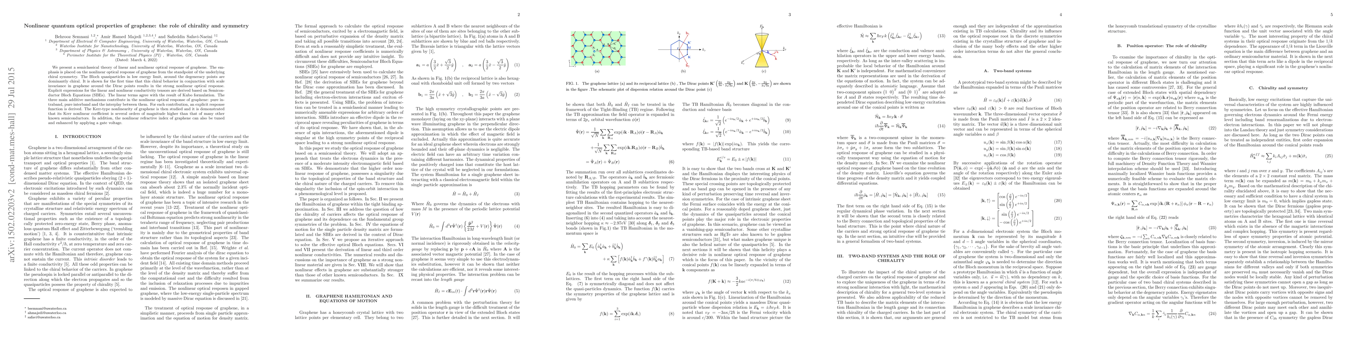 This paper develops a semiclassical theory to explore the nonlinear optical properties of graphene, emphasizing the role of chiral symmetry and its strong nonlinear optical response due to scale invariance. The study reveals that graphene's Kerr nonlinear coefficient is significantly higher than other semiconductors, and its nonlinear refractive index can be tuned via gate voltage.