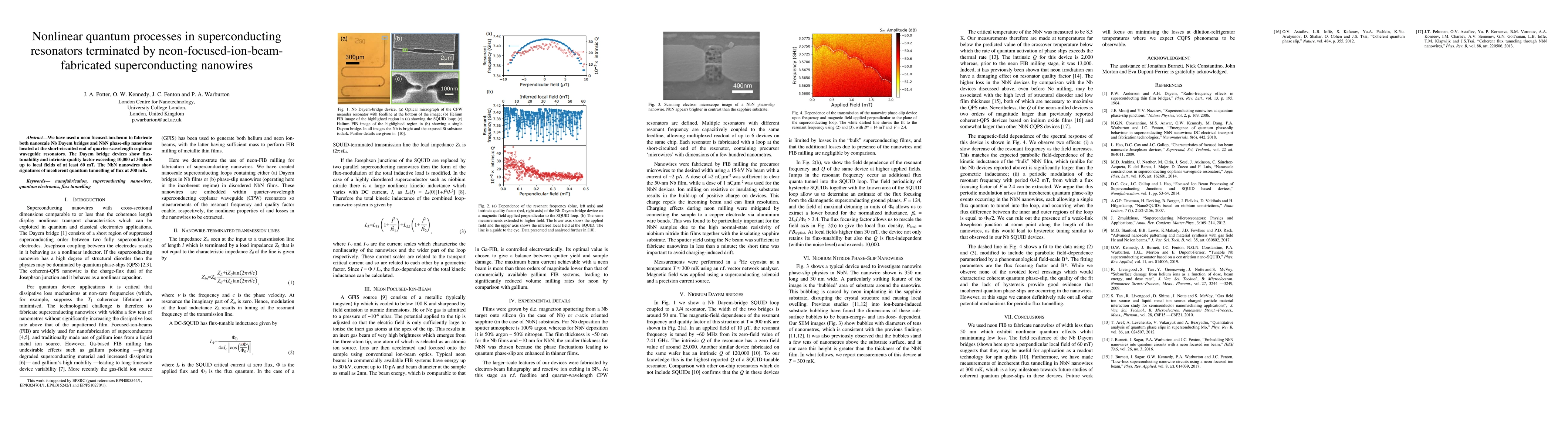 This paper investigates nonlinear quantum processes in superconducting resonators enhanced by neon-focused-ion-beam fabrication, focusing on nanoscale Nb Dayem bridges and NbN phase-slip nanowires. The fabricated devices exhibit flux-tunability and high intrinsic quality factors, with evidence of incoherent quantum tunneling observed in the nanowires.