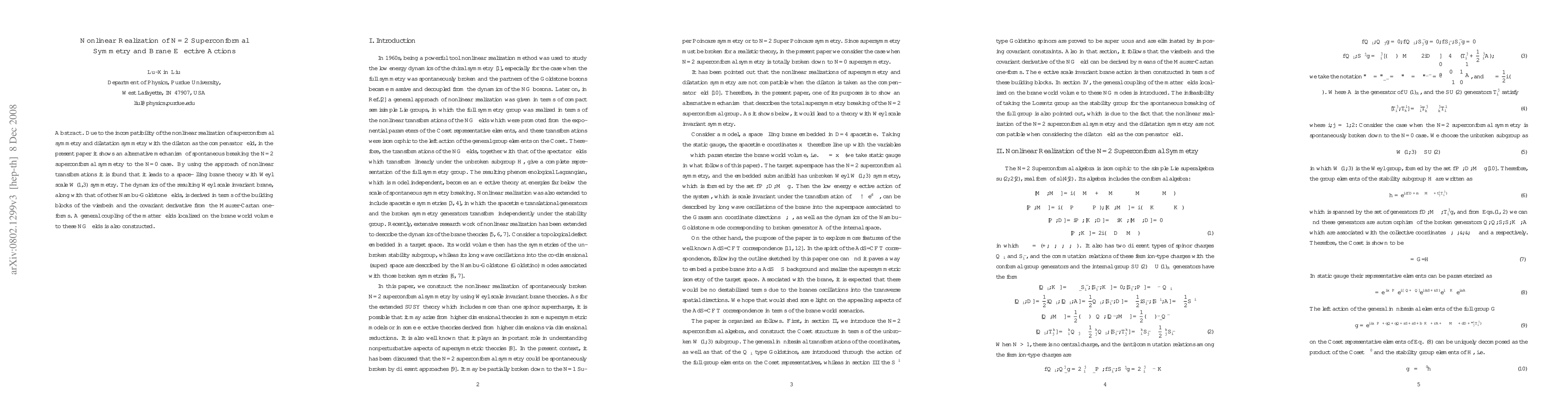 This paper proposes an alternative mechanism for the spontaneous breaking of N=2 superconformal symmetry to N=0, using nonlinear transformations that lead to a space-filling brane theory with Weyl scale W(1,3) symmetry. The dynamics of the Weyl scale invariant brane and associated Nambu-Goldstone fields are derived using vierbein and covariant derivatives from Maurer-Cartan oneforms, and a general coupling of localized matter fields to these fields is constructed.