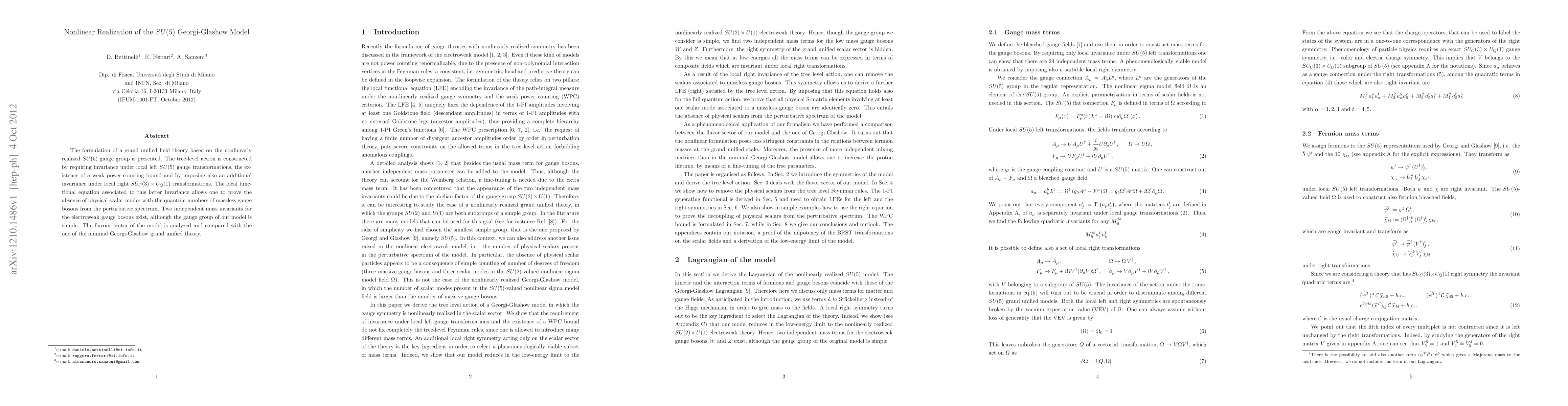 Researchers propose a nonlinearly realized SU(5) gauge group model that avoids physical scalar modes and features two independent mass invariants for the electroweak gauge bosons.