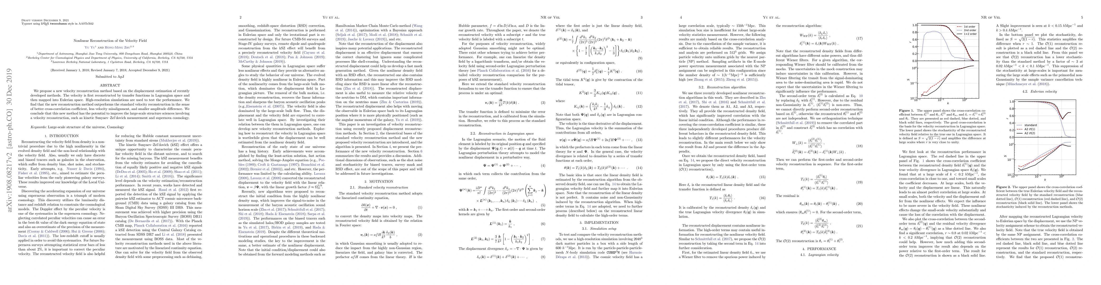 The research introduces a novel velocity reconstruction method using displacement estimation, demonstrating superior performance over standard methods through high-resolution simulations. This improvement could enhance large-scale structure sciences, such as kinetic Sunyaev-Zel'dovich measurement and supernova cosmology.