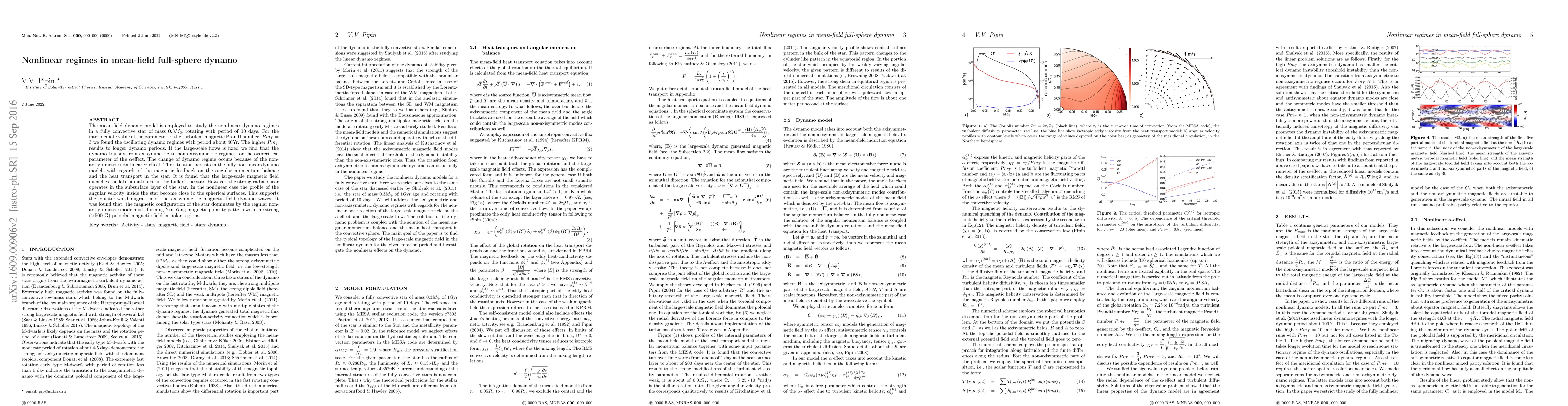This study explores nonlinear dynamo regimes in a fully convective star using a mean-field dynamo model, revealing oscillating dynamo behavior for a turbulent magnetic Prandl number of 3. Higher values lead to longer dynamo periods, and non-axisymmetric regimes emerge due to the non-linear alpha-effect, influencing the star's angular momentum and heat transport.