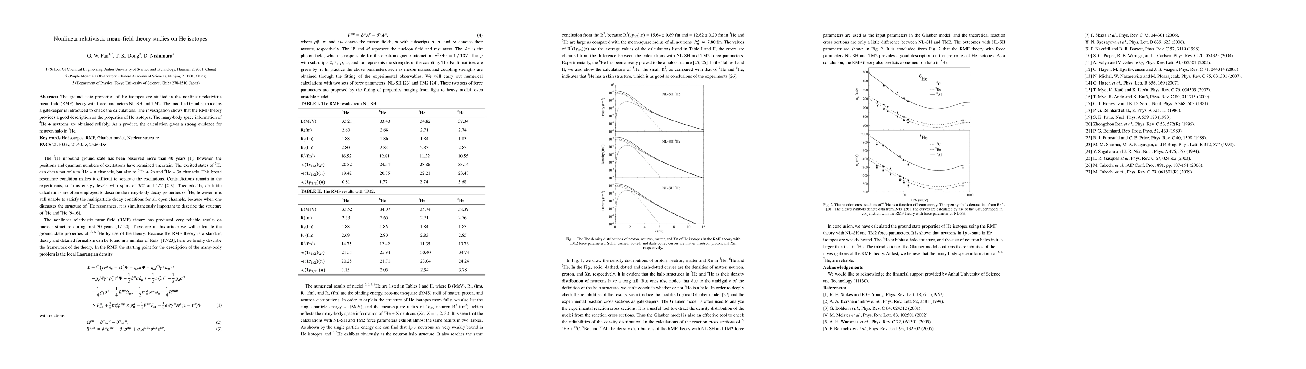 This paper investigates the ground state properties of helium isotopes using nonlinear relativistic mean-field theory, demonstrating its effectiveness and providing evidence for a neutron halo in 5He through reliable many-body space information. The modified Glauber model validates the calculations.