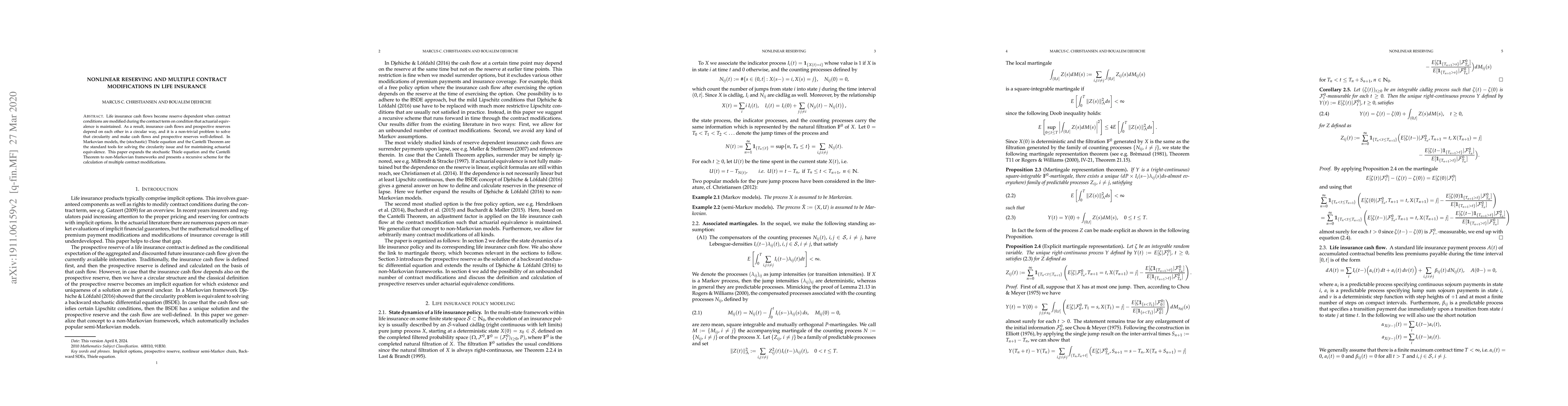 This paper addresses the challenge of nonlinear reserving and multiple contract modifications in life insurance, proposing an expanded stochastic Thiele equation and Cantelli Theorem for non-Markovian frameworks to solve the circular dependency between cash flows and reserves, and introducing a recursive scheme for handling multiple contract changes.