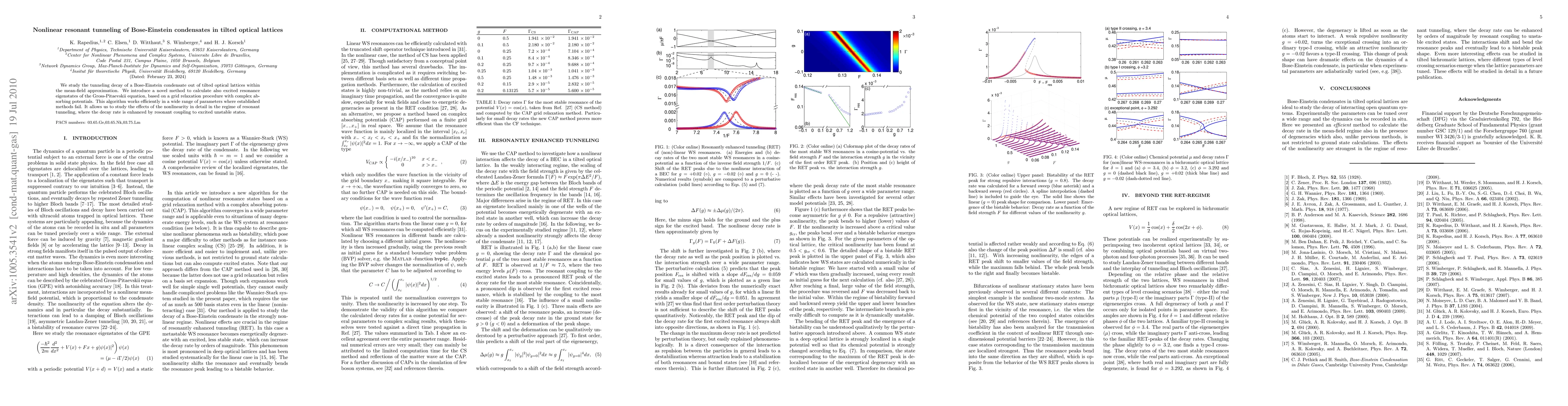 This paper investigates the nonlinear resonant tunneling of Bose-Einstein condensates in tilted optical lattices using a mean-field approximation. The authors develop a novel grid relaxation method with complex absorbing potentials to calculate excited resonance eigenstates, enabling detailed study of the nonlinear effects in resonant tunneling.