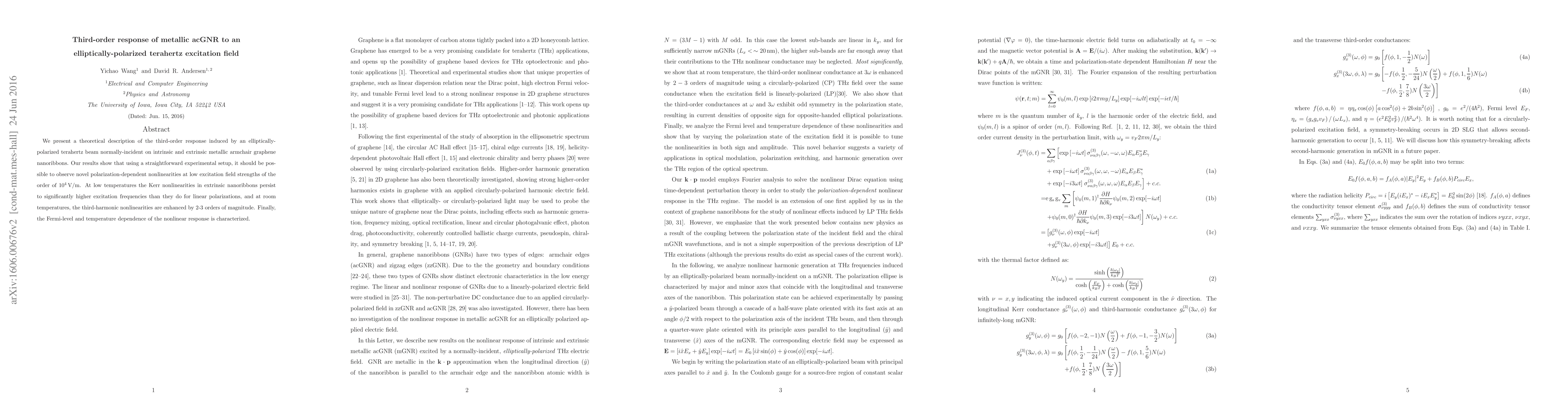 This paper theoretically explores the nonlinear optical response of metallic armchair graphene nanoribbons (acGNR) under elliptically-polarized terahertz excitation, demonstrating significant polarization-dependent nonlinearities at low field strengths and enhanced third-harmonic generation at room temperature. The study highlights temperature and Fermi-level effects on these nonlinear responses.