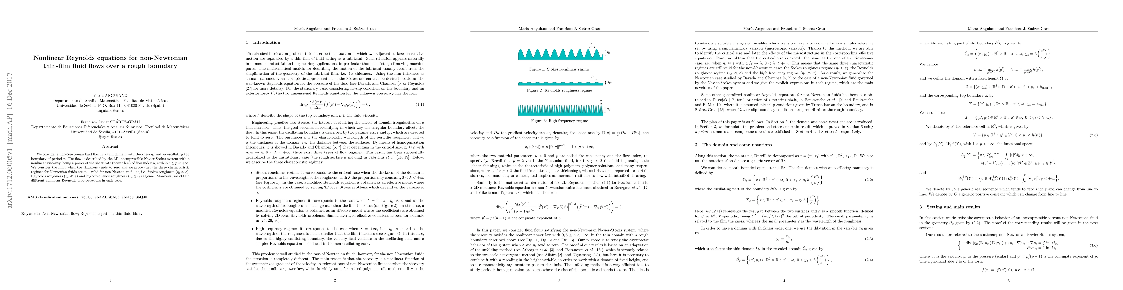 This paper investigates non-Newtonian fluid flows in thin domains with rough boundaries, deriving nonlinear Reynolds equations for three characteristic regimes: Stokes, Reynolds, and high-frequency roughness. The study confirms the applicability of these regimes to non-Newtonian fluids with power-law viscosity.