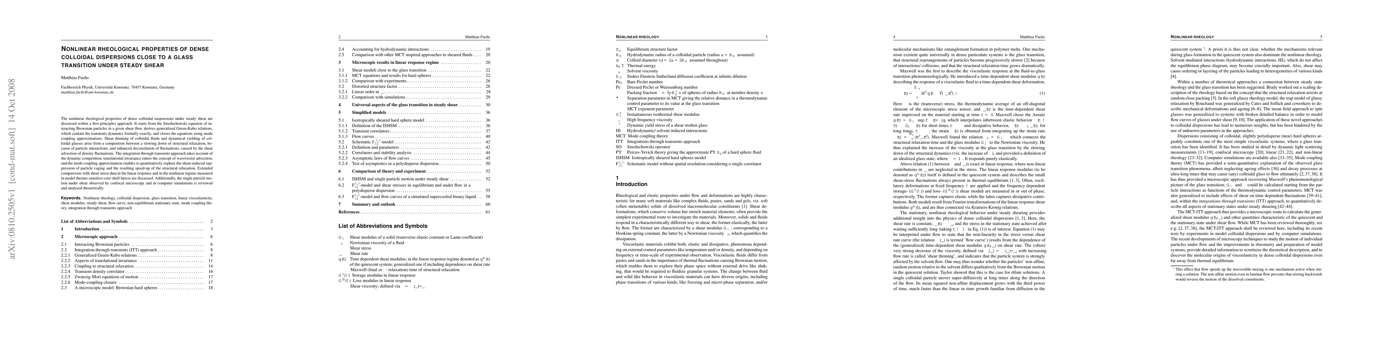 The nonlinear rheological properties of dense colloidal suspensions under steady shear are discussed within a first principles approach. It starts from the Smoluchowski equation of interacting Brownian particles in a given shear flow, derives generalized Green-Kubo relations, which contain the transients dynamics formally exactly, and closes the equations using mode coupling approximations. Shear thinning of colloidal fluids and dynamical yielding of colloidal glasses arise from a competition between a slowing down of structural relaxation, because of particle interactions, and enhanced decorrelation of fluctuations, caused by the shear advection of density fluctuations. The integration through transients approach takes account of the dynamic competition, translational invariance enters the concept of wavevector advection, and the mode coupling approximation enables to quantitatively explore the shear-induced suppression of particle caging and the resulting speed-up of the structural relaxation. Extended comparisons with shear stress data in the linear response and in the nonlinear regime measured in model thermo-sensitive core-shell latices are discussed. Additionally, the single particle motion under shear observed by confocal microscopy and in computer simulations is reviewed and analysed theoretically.