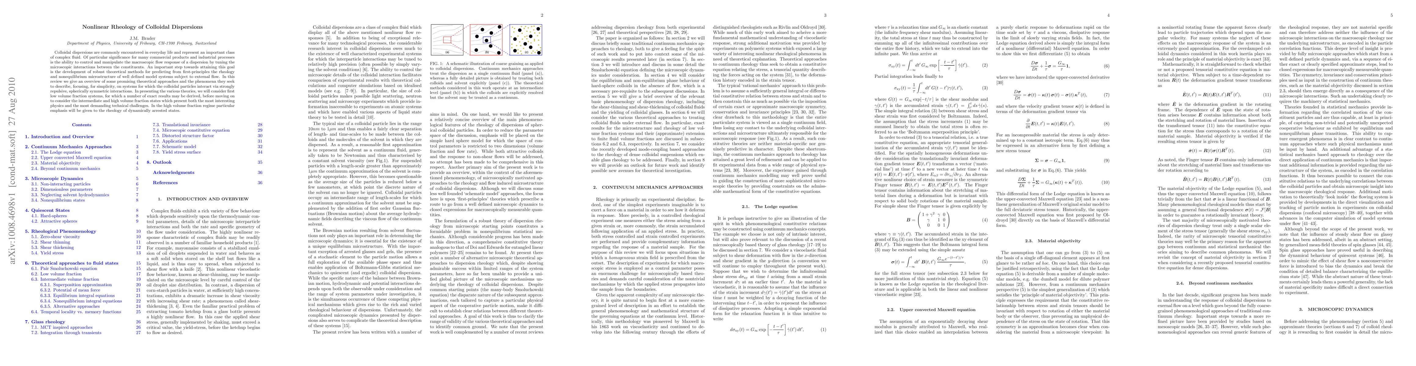 This paper reviews theoretical methods for predicting the nonlinear rheology of colloidal dispersions, focusing on systems with strongly repulsive interactions. It covers exact results for low volume fractions and addresses the technical challenges in modeling intermediate and high volume fractions, especially the rheology of dynamically arrested states.