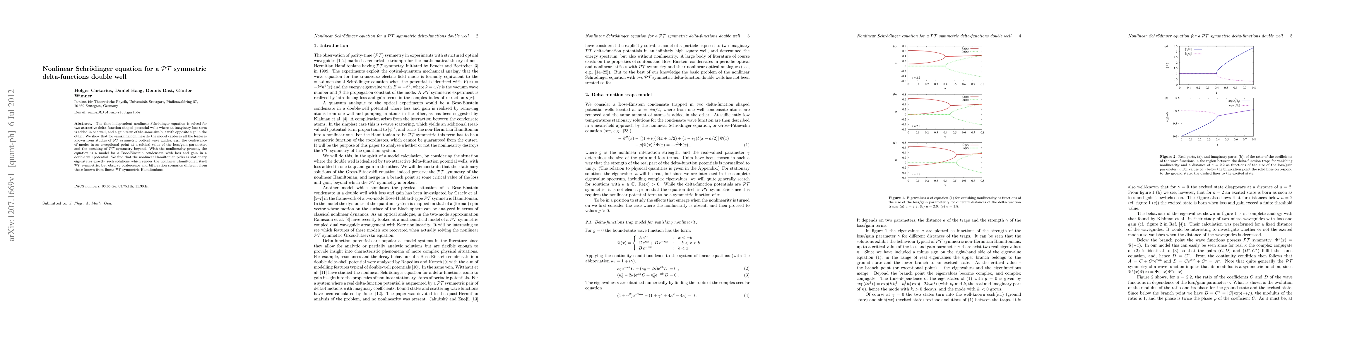 This paper solves the nonlinear Schrödinger equation for a PT symmetric double well with delta-function potentials, showing exceptional point coalescence and PT symmetry breaking. With nonlinearity, it models Bose-Einstein condensates, revealing unique coalescence and bifurcation behaviors compared to linear PT symmetric systems.
