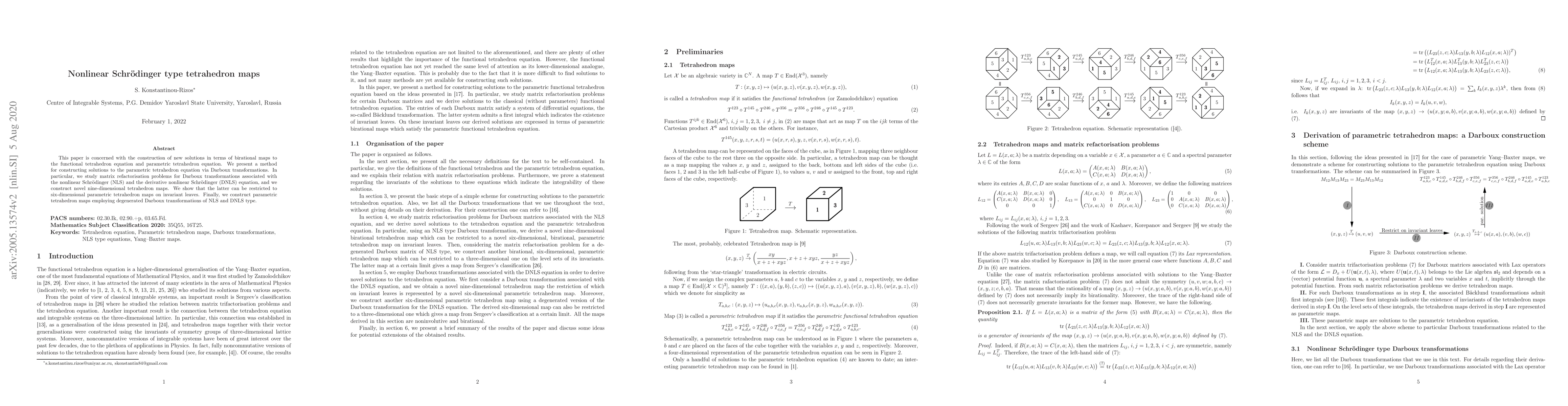 This paper is concerned with the construction of new solutions in terms of birational maps to the functional tetrahedron equation and parametric tetrahedron equation. We present a method for constructing solutions to the parametric tetrahedron equation via Darboux transformations. In particular, we study matrix refactorisation problems for Darboux transformations associated with the nonlinear Schr\"odinger (NLS) and the derivative nonlinear Schr\"odinger (DNLS) equation, and we construct novel nine-dimensional tetrahedron maps. We show that the latter can be restricted to six-dimensional parametric tetrahedron maps on invariant leaves. Finally, we construct parametric tetrahedron maps employing degenerated Darboux transformations of NLS and DNLS type.