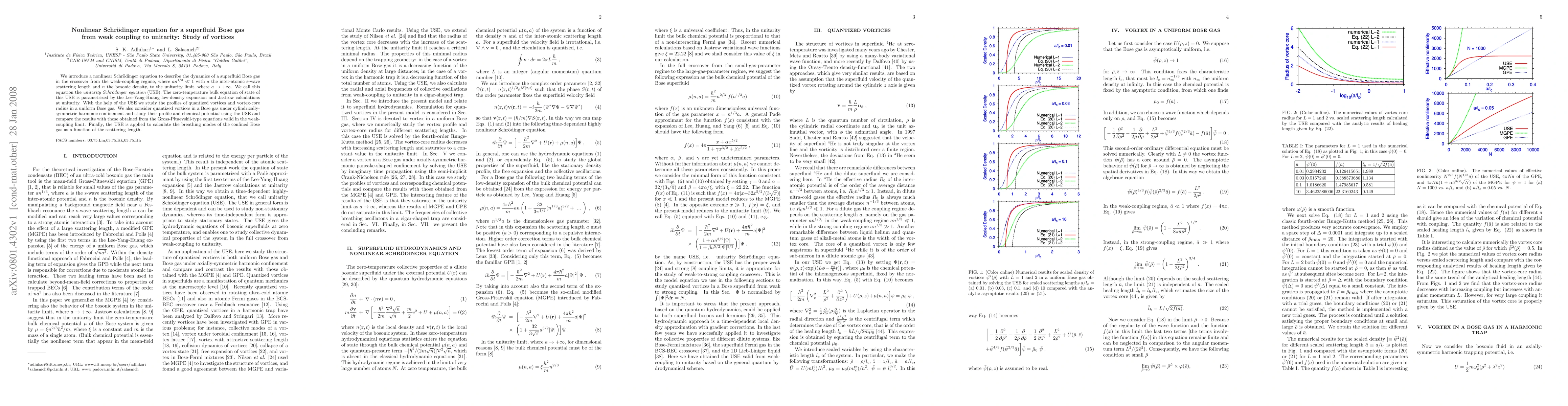 This paper introduces a nonlinear Schrödinger equation, termed the unitarity Schrödinger equation (USE), to model the dynamics of superfluid Bose gas transitioning from weak-coupling to unitarity regimes. The USE is used to study vortex profiles and core radii in both uniform and harmonically confined Bose gases, comparing results with those from Gross-Pitaevskii equations.