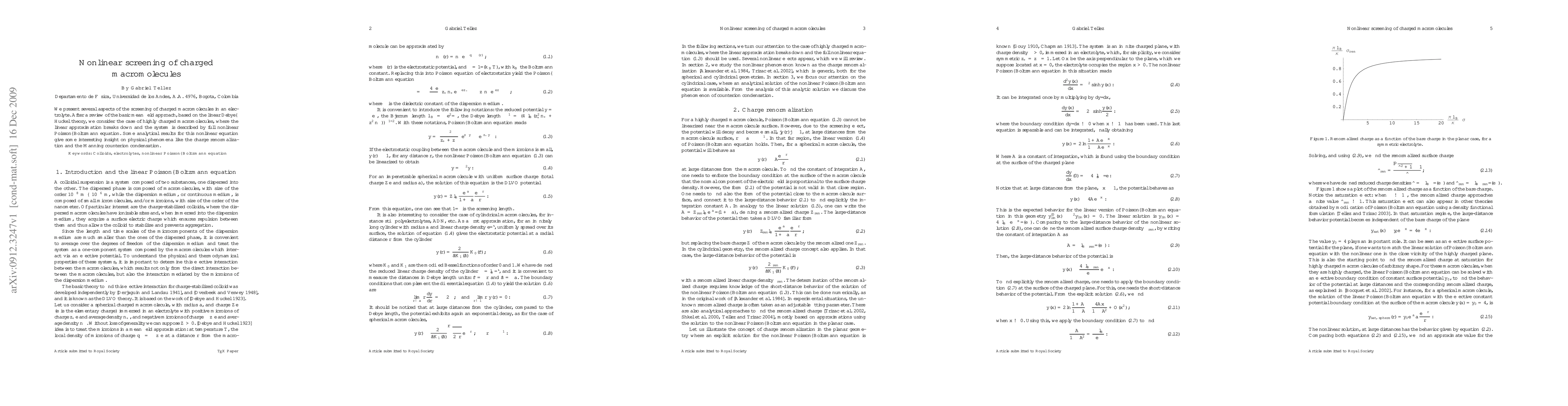 This paper explores the nonlinear screening of charged macromolecules in an electrolyte, moving beyond the linear Debye-Hückel theory to address highly charged macromolecules using the nonlinear Poisson-Boltzmann equation, providing insights into phenomena such as charge renormalization and counterion condensation.