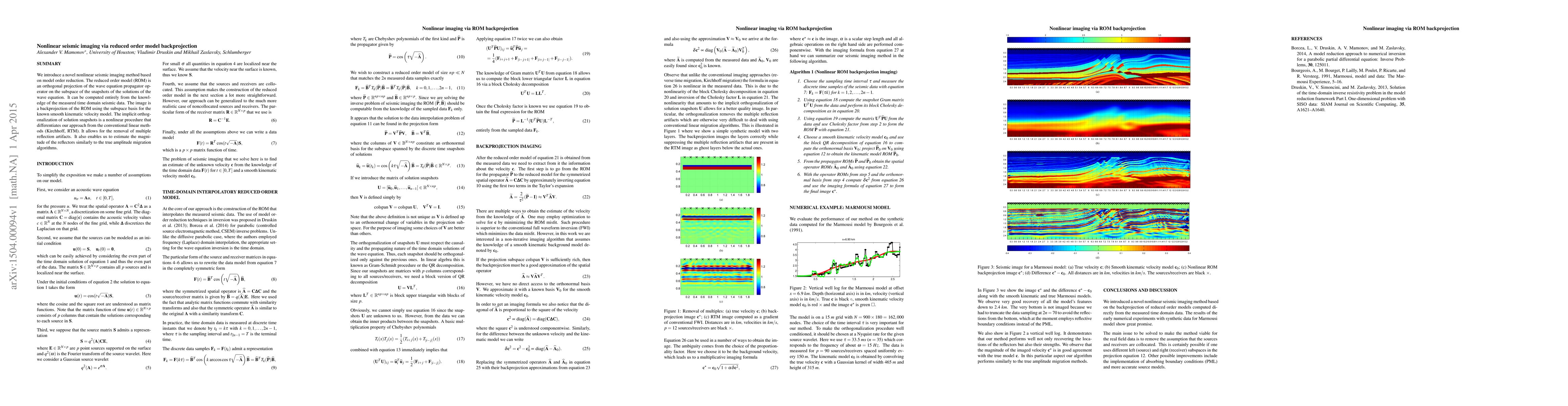 A new method for seismic imaging uses a reduced order model to remove multiple reflection artifacts and estimate reflector magnitude, offering improved image quality compared to traditional linear methods.