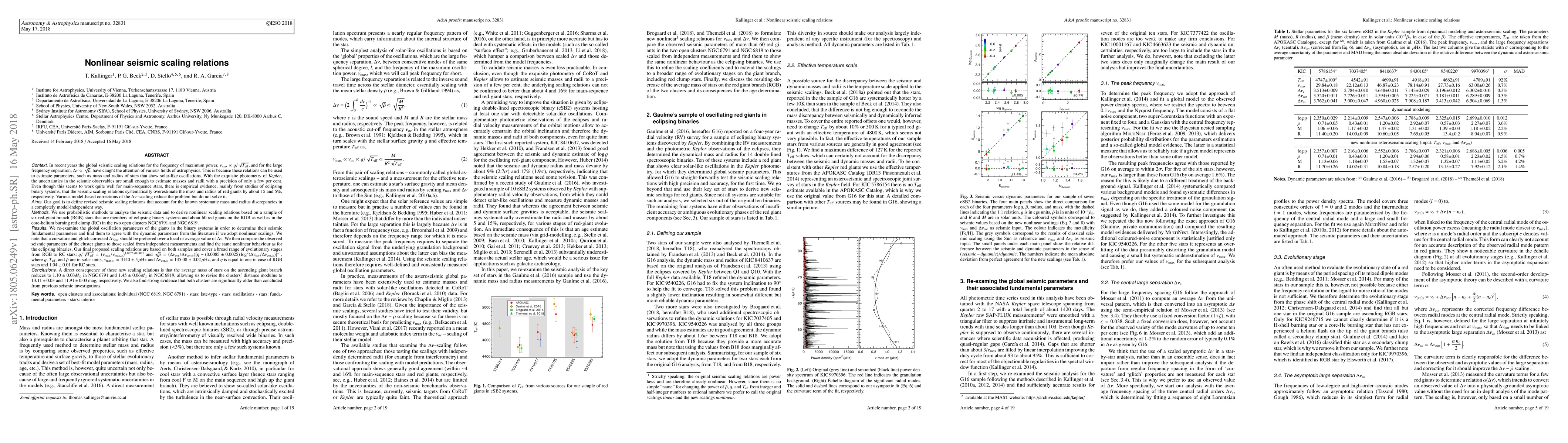 This research refines seismic scaling relations for red giant stars, finding traditional linear relations overestimate masses and radii by 15% and 5% respectively. By applying nonlinear scalings, the study derives new relations for global oscillation parameters, covering a range of evolutionary stages from RGB to RC stars, improving precision in estimating stellar properties using asteroseismology.