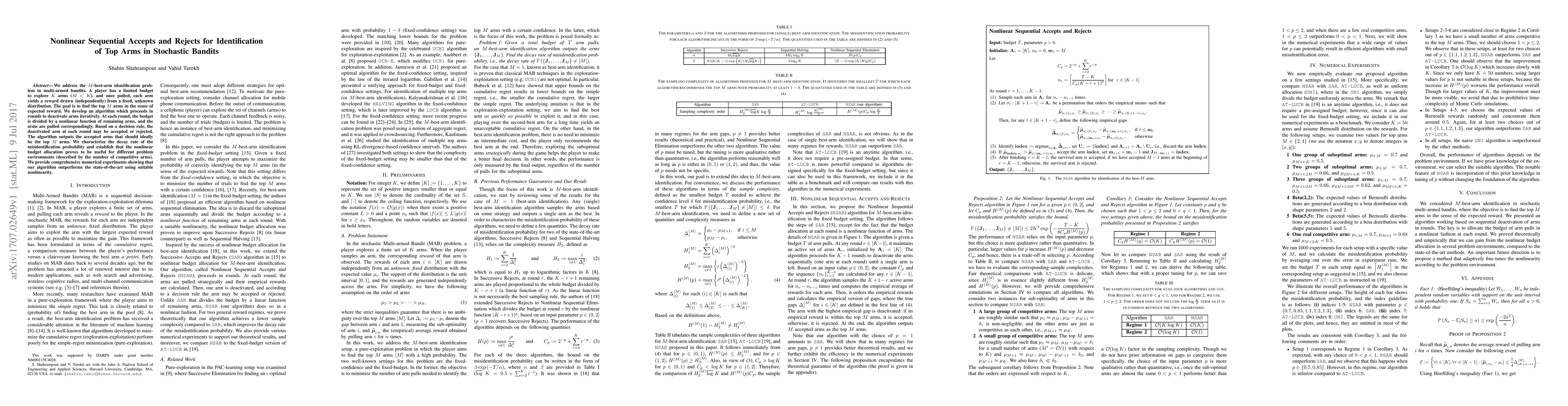 player has a limited budget to explore K arms (M