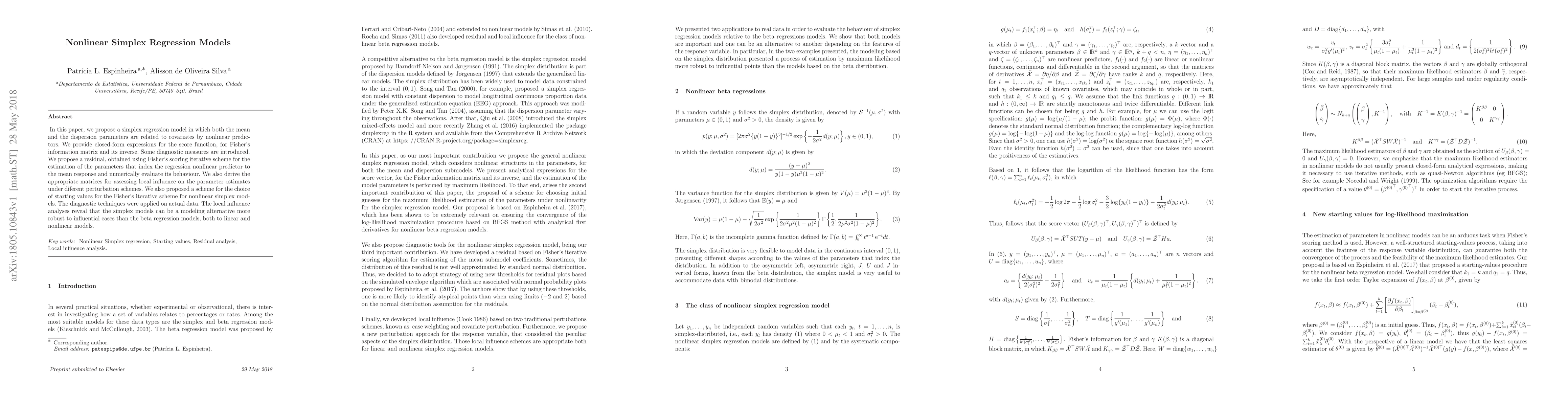 This paper proposes a new nonlinear regression model called Simplex Regression Model that is more robust to influential cases than traditional models. It provides methods for estimating parameters and assessing local influence, with promising results on actual data.