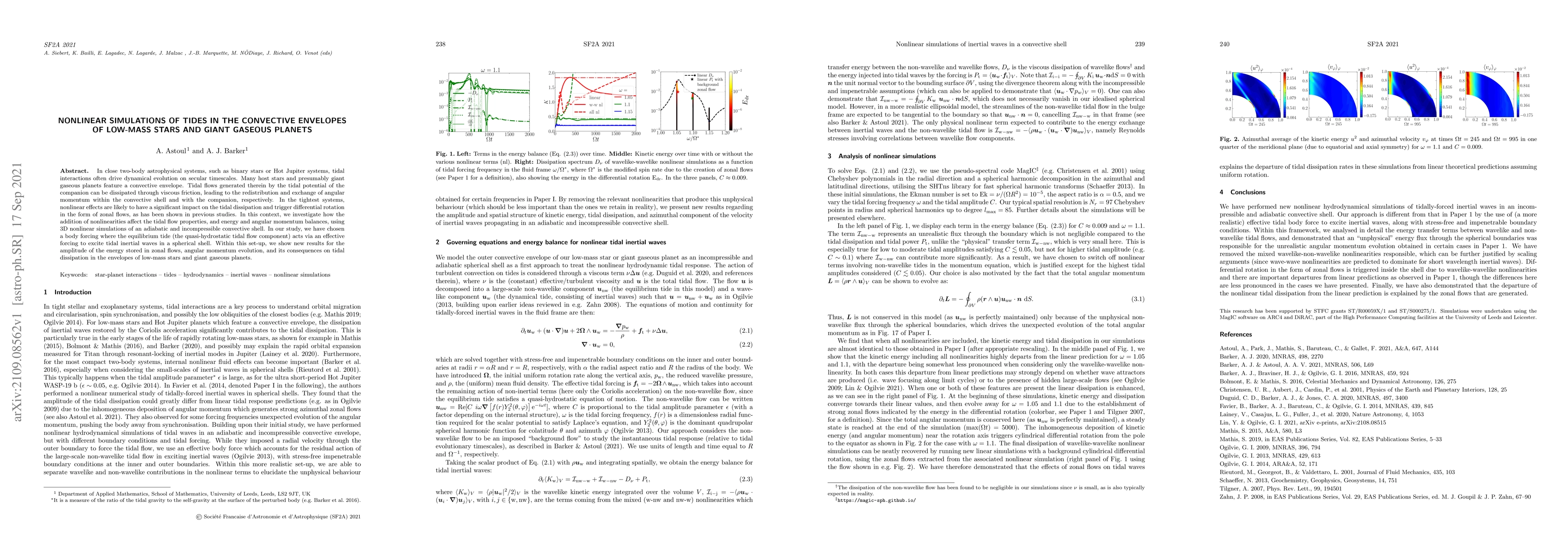 This paper investigates the impact of nonlinear effects on tidal flows in the convective envelopes of low-mass stars and giant gaseous planets using 3D simulations. It finds that nonlinearities significantly affect tidal dissipation, energy storage in zonal flows, and the evolution of angular momentum.
