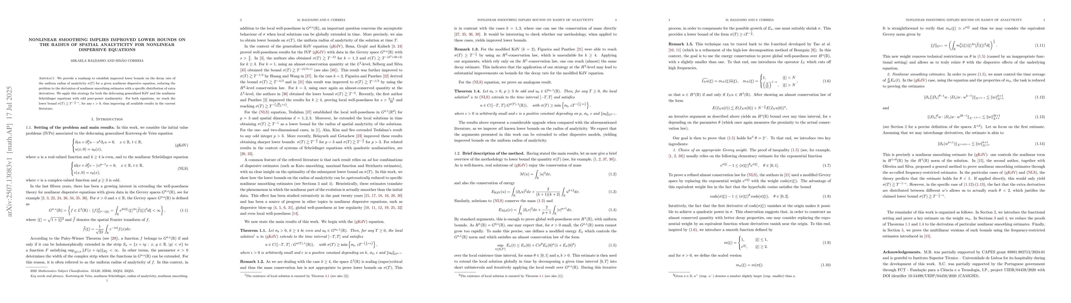 We provide a roadmap to establish improved lower bounds on the decay rate of the uniform radius of analyticity $\sigma(T)$ for a given nonlinear dispersive equation, reducing the problem to the derivation of nonlinear smoothing estimates with a specific distribution of extra derivatives. We apply this strategy for both the defocusing generalized KdV and the nonlinear Schr\"odinger equations with odd pure-power nonlinearity. For both equations, we reach the lower bound $\sigma(T)\gtrsim T^{-\frac{1}{2}-\epsilon}$, for any $\epsilon>0$, thus improving all available results in the current literature.