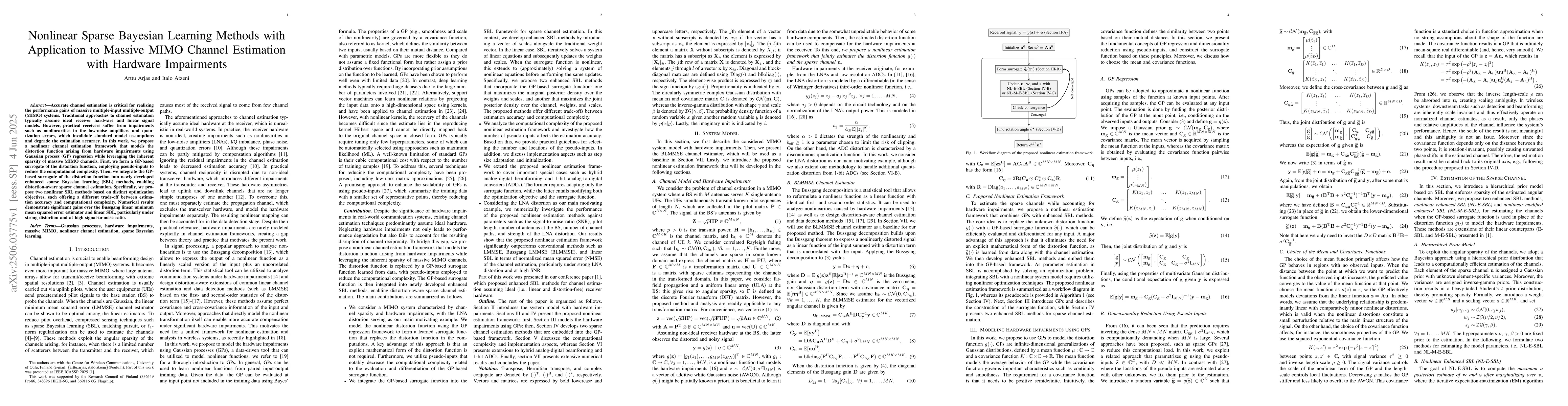 Development of nonlinear sparse Bayesian learning methods incorporating Gaussian process regression for accurate channel estimation in the presence of hardware impairments in massive MIMO systems.